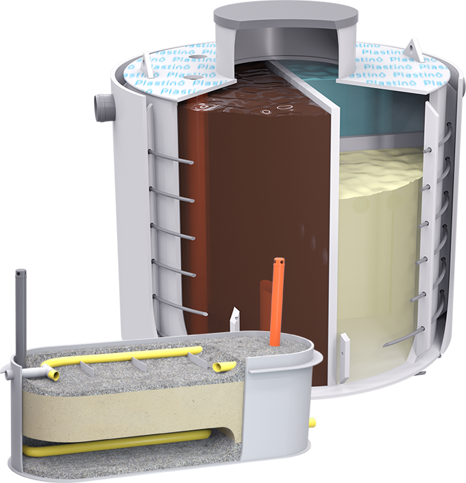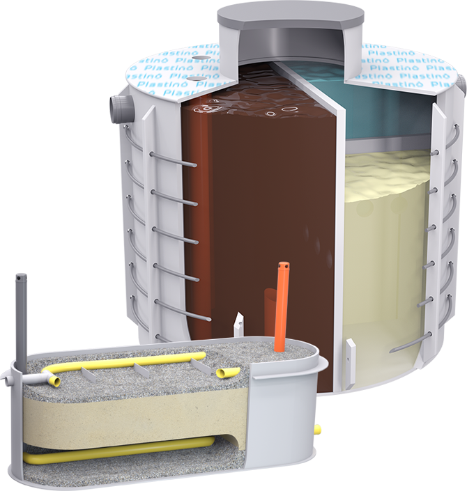 - Maximální účinnost: Sestava septiku s pískovým filtrem zajistí vyčištění odpadní vody až na 96 %.