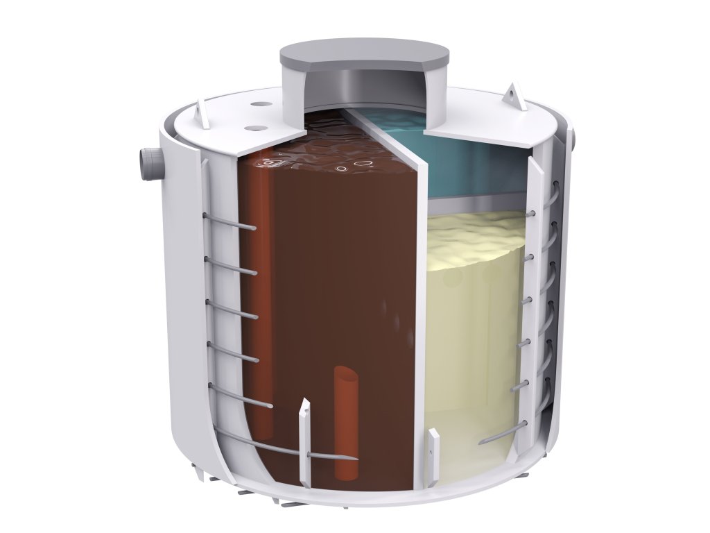 - Řešení pro nejnáročnější podmínky: Dvouplášťový tříkomorový septik určený do míst s výskytem spodní vody a jílu; po přebetonování pojezdový.