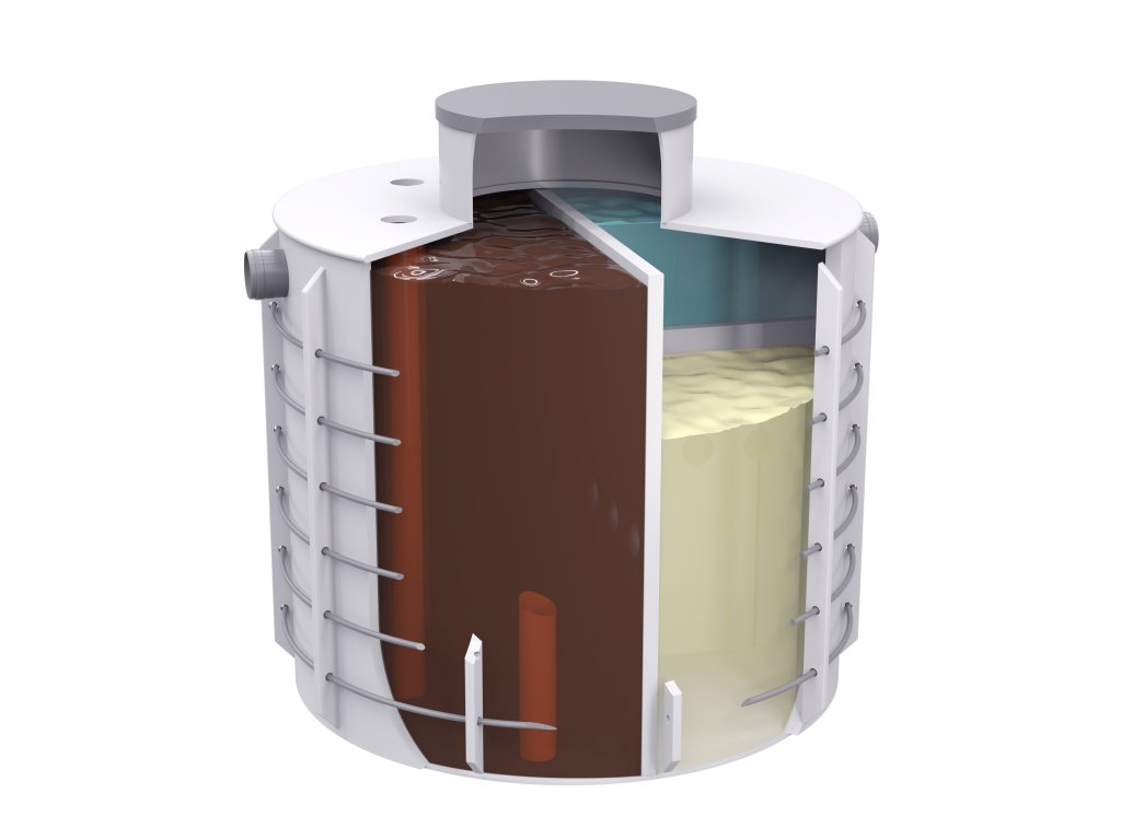 - Tříkomorový septik: Vyroben z prvotřídního polypropylenu s přípravou pro armování a vnitřními přepážkami.