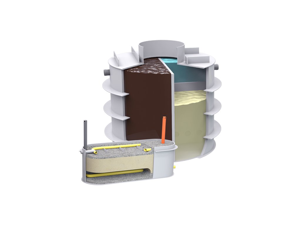 - Tříkomorový septik: Vyroben z prvotřídního polypropylenu s integrovanými přepážkami.