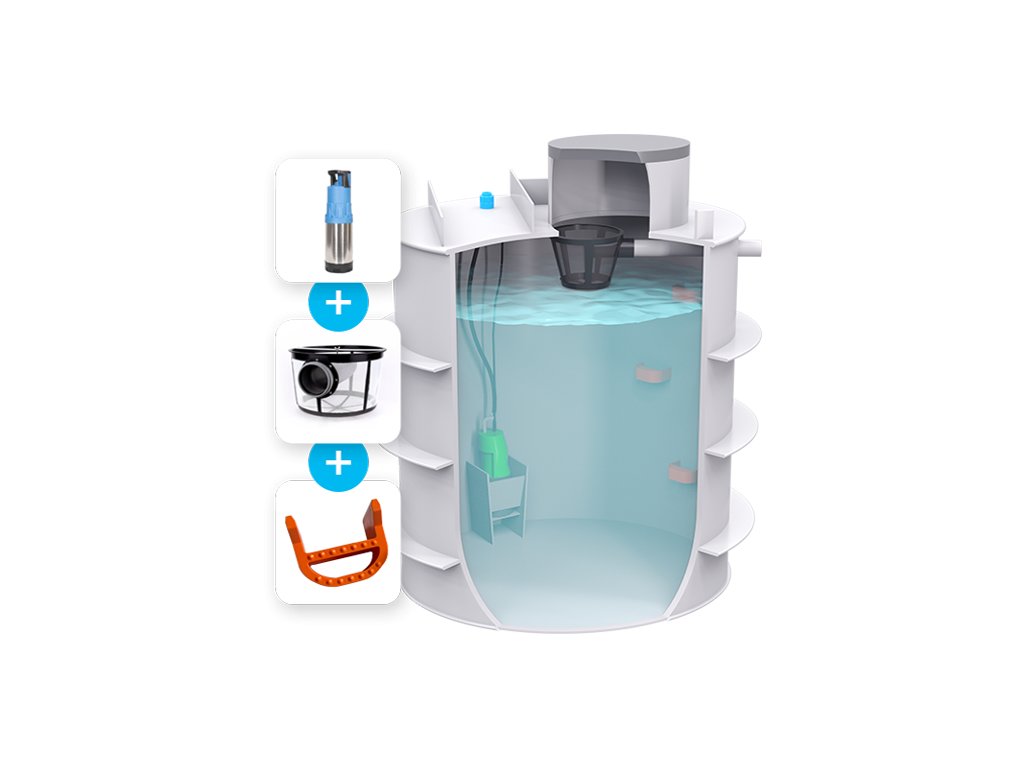 Tato sestava je navržena jako ucelený systém, kde po usazení nádrže stačí propojit dodávané komponenty, napojit zahradní hadici a začít využívat dešťovou vodu.