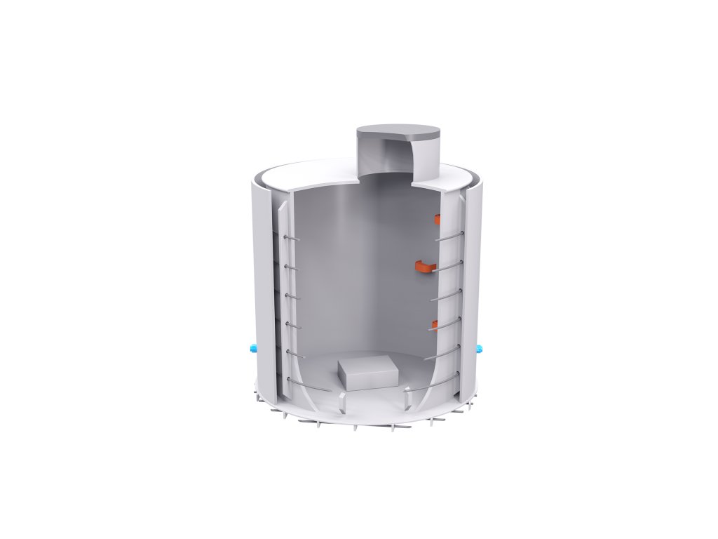 - Integrovaná kompozitní armatura: Pro maximální statickou odolnost je šachta již z výroby v meziplášti osazena kompozitní armaturou. To výrazně urychluje montáž a zaručuje správné vyztužení betonové směsi bez nutnosti vkládání další výztuže.