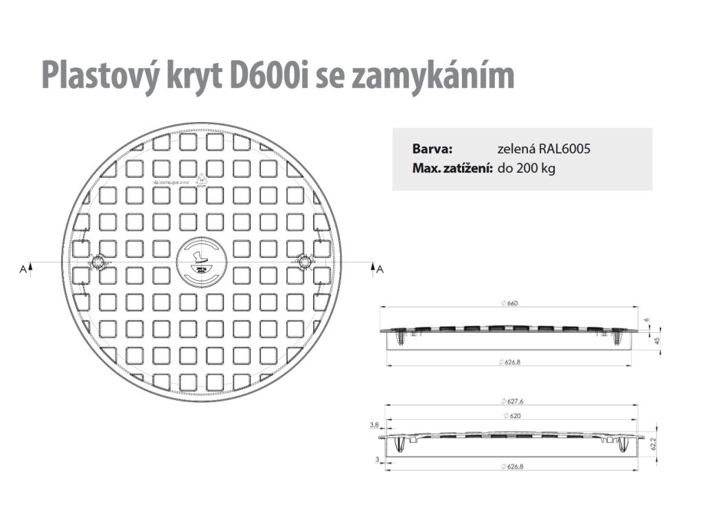 Zelený poklop s uzamykáním nosnost 200kg